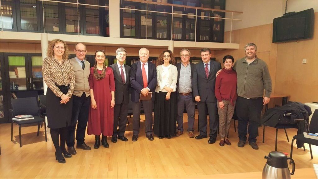 JEFFREY SACHS WITH SPANISH NETWORK CHAIR MIGUEL ANGEL MORATINOS (5TH FROM LEFT) AND MEMBERS OF THE SPANISH PARLIAMENT IN MARCH 2017