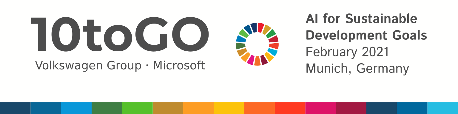The 10toGO hackathon is a novel, public initiative for teams from all around the world to develop approaches based on artificial intelligence for tackling the Sustainable Development Goals. Participating teams benefit from dedicated mentorship from technology and subject experts as well as discounted access to special tech tools. The winning team(s), announced on February 26, will receive 100,000€ to incubate their idea over the next six months.